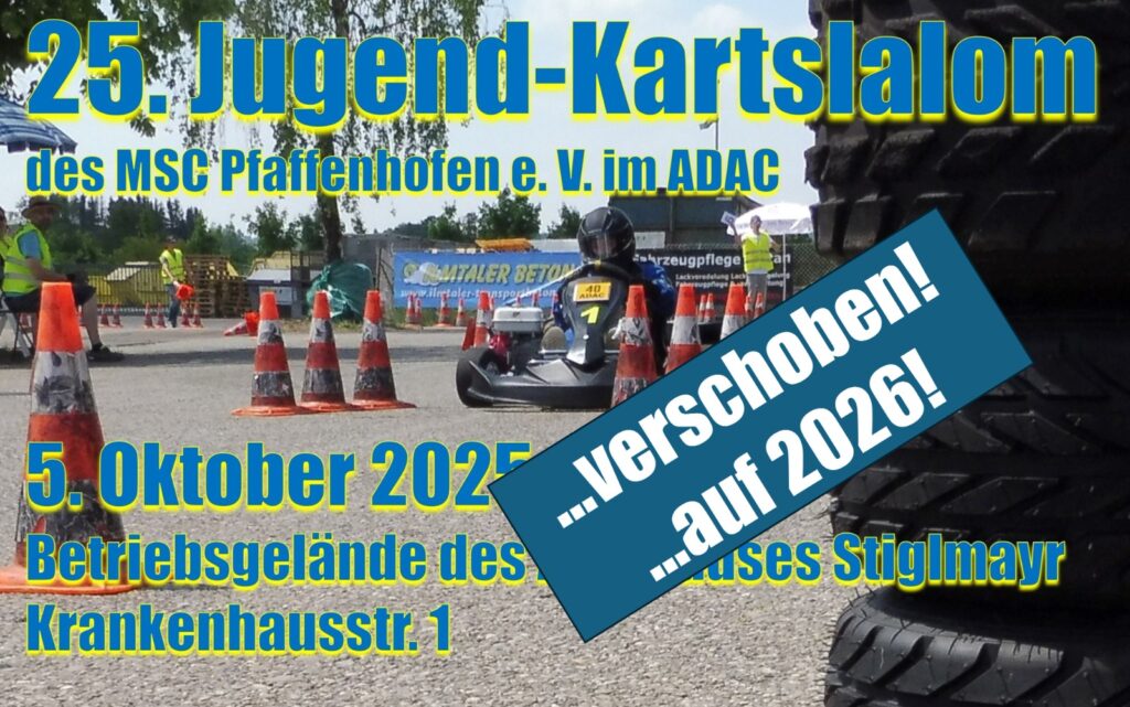 Leider …müssen wir unsere Veranstaltung am kommenden Sonntag absagen! Aufgeschoben ist nicht aufgehoben: Definitiv wird unser Kartslalom-Event 2026 stattfinden!