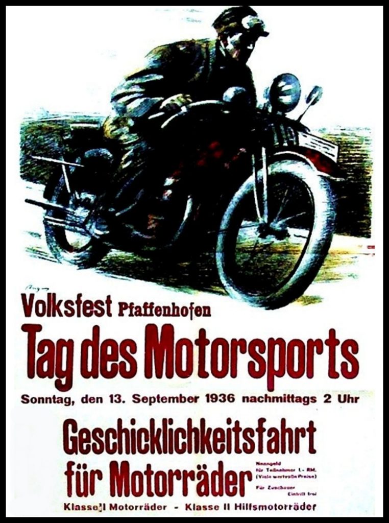 Beim Motorrad-Trial geht es bekanntlich nicht um Geschwindigkeit, sondern um Geschicklichkeit beim Befahren von Sektionen mit unterschiedlichen Schwierigkeitsgraden. Man höre und staune: Etwas Ähnliches gab es in Pfaffenhofen schon gegen Ende der 1920er-Jahre. Der „Tag des Motorsports“, der in den Jahren vor dem zweiten Weltkrieg oft zur Volksfestzeit durchgeführt wurde, war bei Jung und Alt beliebt. Höhepunkt hierbei: Eine Motorradgeschicklichkeitsfahrt durch einen Parcours, bestehend aus selbst gebauten Holz-Hindernissen. Eine Wertung erfolgte durch „Sammeln von Strafpunkten“, etwa für das „Auslassen von Streckenteilen“ oder für „Motorsterben.“